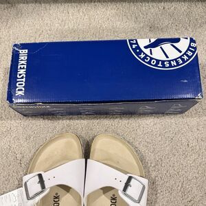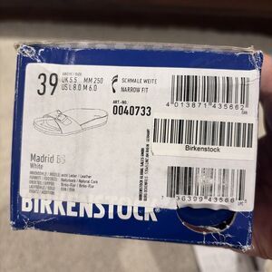 NIB Birkenstock Madrid Mules White Sandals Slides Shoes Size EU 39 Women 8 new in box. Damage/tape/ dents on shoe box.