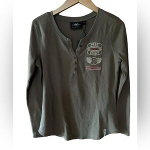 NWT Harley-Davidson Winged Henley. Measurements: bust 37”/arm length 24”/length 26.5”