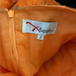 This vibrant orange gown is perfect for prom, featuring a sweetheart neckline and a sleeveless design. The fitted bodice is adorned with delicate embroidery, transitioning into a flowing skirt with a subtle sheen, making it a striking statement piece.
