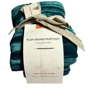 Anthropologie Plush Crushed Velvet King Shams, Set of two (2). MSRP $98. Super soft crushed velvet. Beautiful deep teal “turquoise” color.