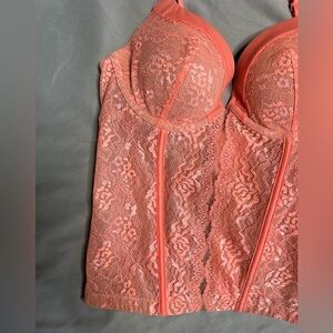 This chic coral lace bustier combines elegance and comfort, perfect for enhancing your intimate wardrobe.
