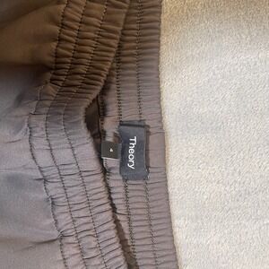 Keywords: Theory pants, elastic waist pants, tailored trousers, casual pants, women's trousers, gray pants, comfortable pants, work pants, sophisticated, minimalist, everyday wear, smart casual