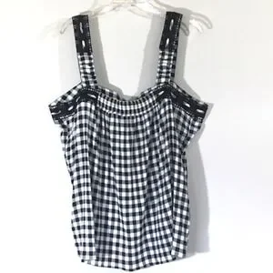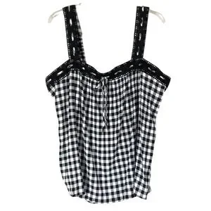 Torrid gingham and lace tank top. Drawstring lace trim neckline. Good used condition.
