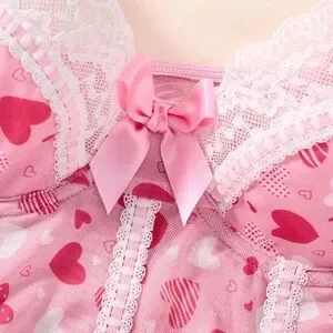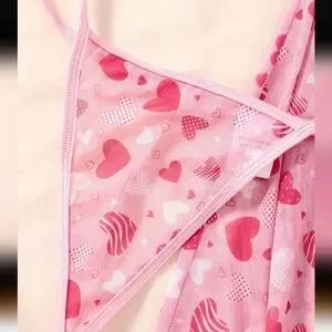 Embrace elegance with this pink heart-patterned lingerie set. Perfect for adding a touch of romance to your collection.--Pretty good though not super descriptive there posh AI.😊-Love is in the air!💞Here, we have a sweet pink mesh nightie with white lace & accents & an all over pattern that has pink & white hearts with different designs & varying sizes, shapes & shades of pink. There is a ton of pink satin ribbon threading going on throughout this pretty lil chemise in the piping & straps with cute pink satin bows at each adjustable shoulder strap & in the center of the bust. The top portion of the cups is trimmed with a generous strip of gorgeous white floral lace & there is also a heavy helping of this lace along the hemline. So sweet! The material itself is soft, semi sheer & has a good amount of stretch to it making this a very comfortable, breezy lingerie or sleep set. Would be wonderful for a Valentine's sleep over!💝💌💐🩷It's very flirty, feminine & a size medium. Also, it is new with tags.😁Enjoy!💘