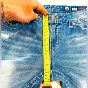Miss Me Easy Crop Mid Rise Distressed Jeans 31x21.5 Bling Pockets EUC