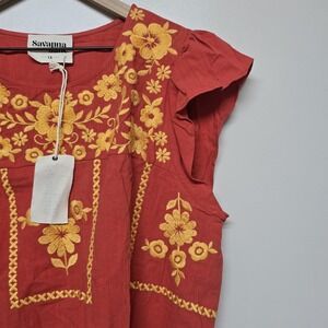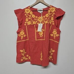Savanna Jane Floral Embroidered Floral Peasant BOHO Top Size 1X Print Blouse NWT