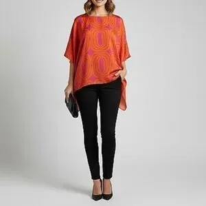 New York & Company Orange and Purple Tunic Top Size S