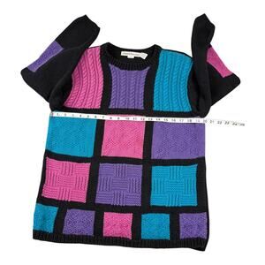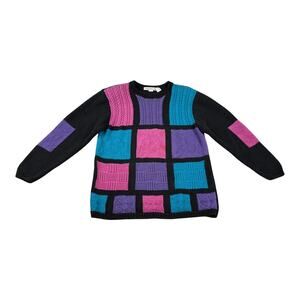 Vintage 80's Amanda Braendel Hand Knit Sweater Geometric Color Block Size Medium