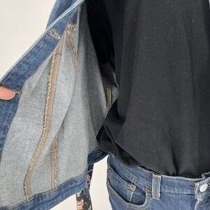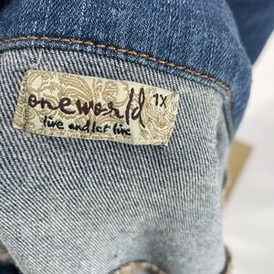 One World Blue Denim Jacket Women's 1X With Embellished Sleeves With Sequins