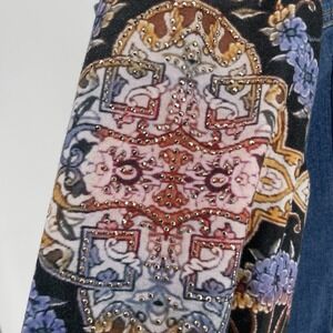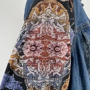 One World Blue Denim Jacket Women's Med with Embellished Sleeves With Sequins