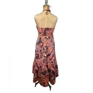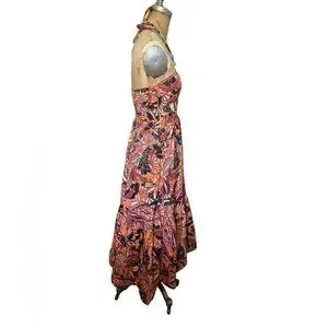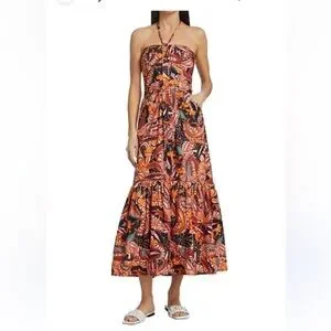 ALC Adelle Tiered Halter Dress Midi Length Tropical Print Size 8 Cotton