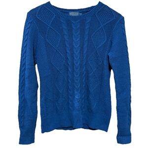 Pendleton Cable Knit Sweater Navy Blue Cotton Cashmere Blend Small Petite