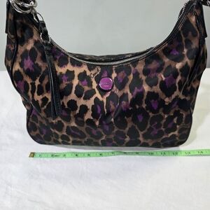 Coach F26033 Signature Stripe Ocelot Leopard Hobo Shoulder Nylon Purse Bag