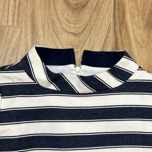 ANN MASHBURN Navy and White Striped Long Sleeve Mock Neck Blouse