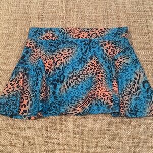 I.AM.GIA Blue and Orange Skater Leopard Skirt Medium