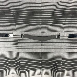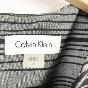 Black and grey striped sheath dress by Calvin Klein. the length finishes right around the knee, and the belt has an elastic panel at the back for comfort. Size 4.