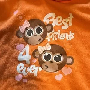 Bright orange hoodie with cute monkey graphics and 'Best Friends 4 Ever' text. Cozy and fun for kids.