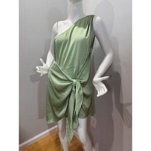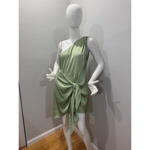 CUPSHE Women Satin Wrap Cocktail Party Dress One Shoulder Sleevesless green XL