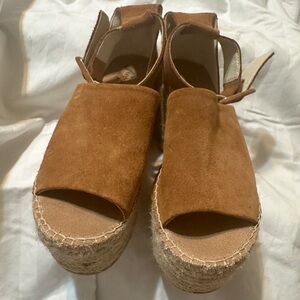 FREE PEOPLE Brown Suede Espadrille Wedge Sandals