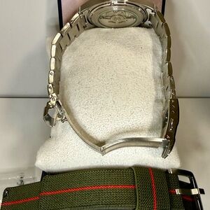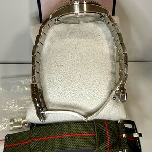 Unidirectional Green/Black Rotating Bezel, Scratch Resistant Sapphire Crystal, Exhibition Caseback, Stainless Steel Case, Bracelet &