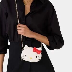 Fun Hello Kitty crossbody from Kate Spade with a gold tone removable chain strap and zip top closure. Sold out online collectible 3D piece from Sanrio x Kate Spade collaboration.