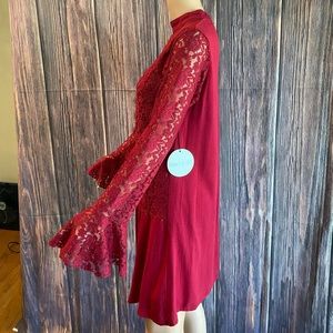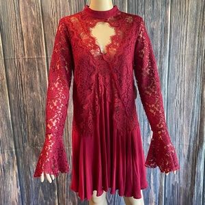 Urban Outfitters Kids the Sky Medium NWT red lace belle sleeve boho flowy dress