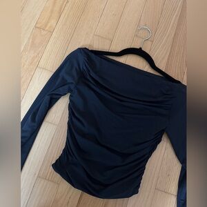 SKIMS Black Off-Shoulder Long Sleeve Top