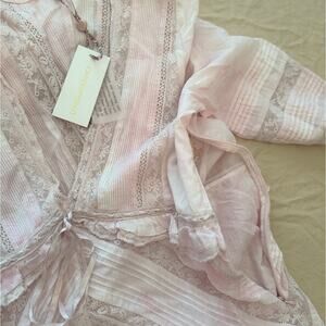 LoveShackFancy Blush Maxi Dress with Ruffle Sleeves