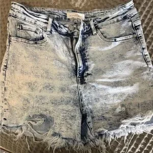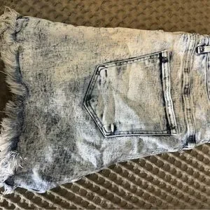 Super cute light colored denim jean shorts. Very comfy and stretchy. Risen jeans brand. Size XL. I was a 12/14 and these fit perfect. Mid/ high rise.