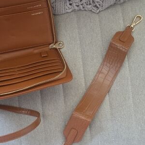 Calpak Brown Croc-Embossed Travel Crossbody Bag