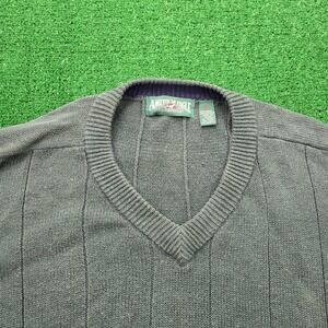 American Eagle Sweater Mens XL Green V Neck Striped Knit Vintage 90s Preppy