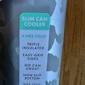 Corkcicle Slim Can Cooler Woodland Camo 12 oz Insulated Green Gray