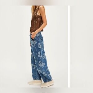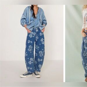 Free People We the Free Good Luck Printed Barrel Jeans - Laser Daisy - 28 🌼