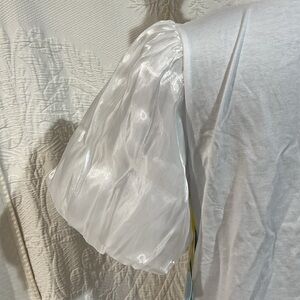 This elegant white puff sleeve top features a stylish design perfect for any occasion. The shimmering fabric adds a touch of sophistication. Ideal for pairing with your favorite accessories.