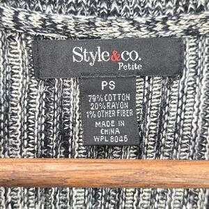 Vtg Y2K Style & Co Sweater Cardigan S Petite Gray Marbled Knit Grunge Babydoll