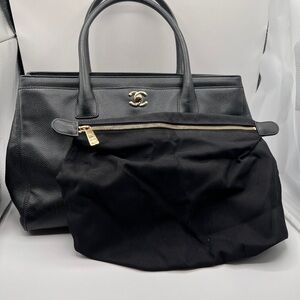 CHANEL Executive Cerf Black Caviar Leather Tote with Gold Accents