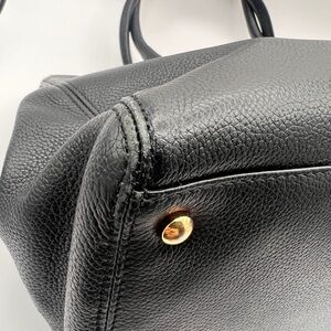 This is an authentic CHANEL Cerf Executive Shopper Tote in Black. This is a classic shopper tote that is simple yet sophisticated and very chic. The bag is crafted of luxurious leather in black. The bag features tall rolled leather top handles and a facing gold Chanel CC Mademoiselle turn lock. The bag has full wide pockets along the sides and the top is open to an interior of black fabric with inner pockets.