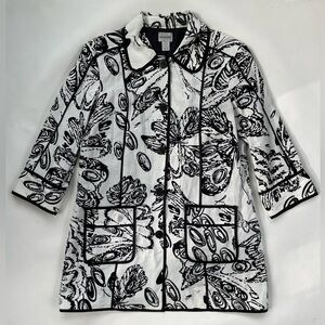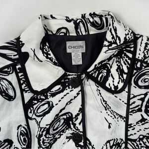 Chico’s White & Black LINEN-Blend Jacket Size Medium 8