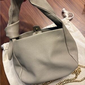 Small beige leather bag with gold crossbody chain. Perfect size for the essentials! Never used, in brand new condition.