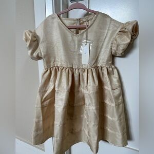This elegant cream dress is perfect for formal occasions. Its soft fabric and stylish design make it a must-have for your child's wardrobe.