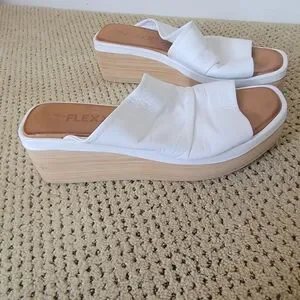 THE FLEXX, LARCH Wedge, White and Tan Sandal, SIZE 40 (Euro 81/2-9)