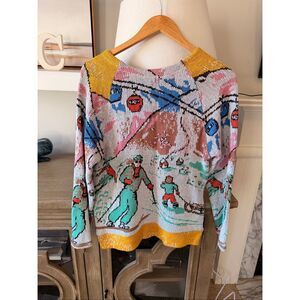 RARE Koch Vintage-Inspired Ski Scene Knit Sweater Size Small