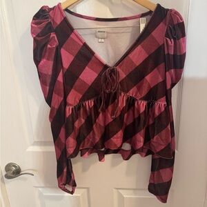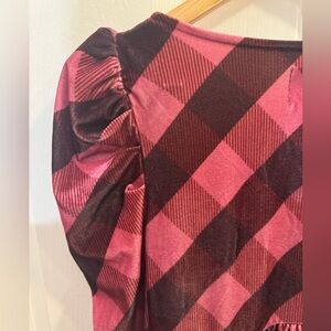 Anthropologie Maeve Pink Plaid Velvet Babydoll Top, size Medium