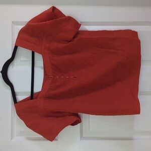 Madewell square neck short sleeved popover top. Size x-small. Color is "roasted squash" (deep orange).