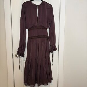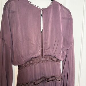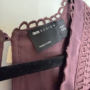 ASOS DESIGN Plum Purple Crochet Lace Insert Midi Dress Long Sleeve Boho Size 6