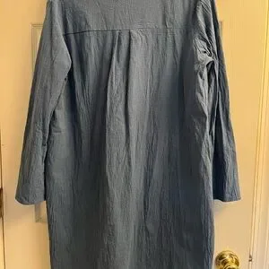 Blue Women’s Long Sleeve Button-Up Dress W Pockets NWOT