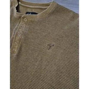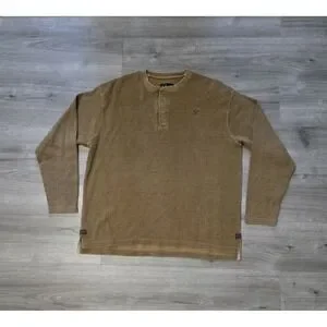 Dick Idol Waffle Knit Henley Shirt Mens XL Brown Long Sleeve Snap Button