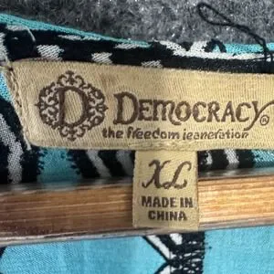 Keywords: Democracy, kimono, cardigan, turquoise, black, diamond pattern, fringe, plus size, XL, boho, layered, lightweight, statement piece