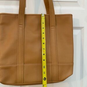 Elegant Coach tote in tan leather. Perfect for everyday use. Spacious and stylish.