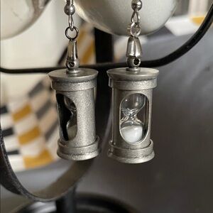 Unique metallic hourglass earrings. Perfect for a stylish touch.